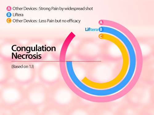 Liftera-V is a focused ultrasound instrument. Its working principle is to transmit high-frequency ultrasonic pulse to concave ceramic and the resulting ultrasound to generate thermal energy and create a thermal coagulative zone.